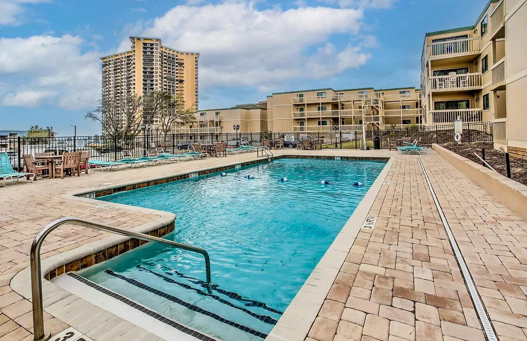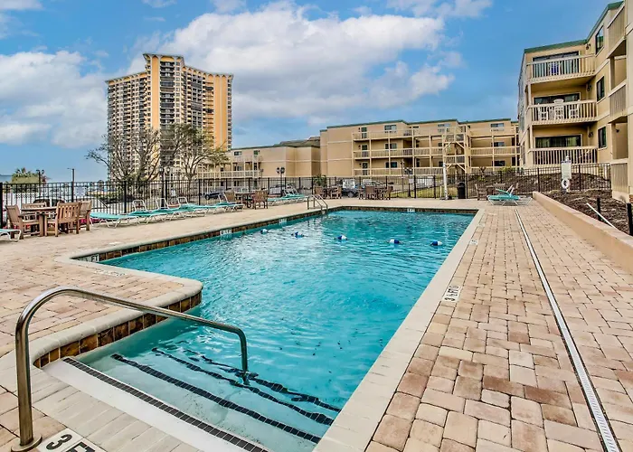 Walk To Beach And Pier Myrtle Beach Getaway With Deck apartment is located around a 20-minute walk from Dunes Golf and Beach Club and about 4 km from Meher Spiritual Center. With access to a golf playground, the spacious apartment is ideal for active guests seeking recreation options.